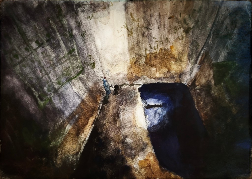 Sketch (incl. #watercolor #gouache) from photo by Carol Guzy.A cramped cell from one of #Assad ‘s hellish torture prisons.Unspeakable horrors were committed here. Detainees used green soap to draw calendars, cries for help and home, on the crumbling walls.