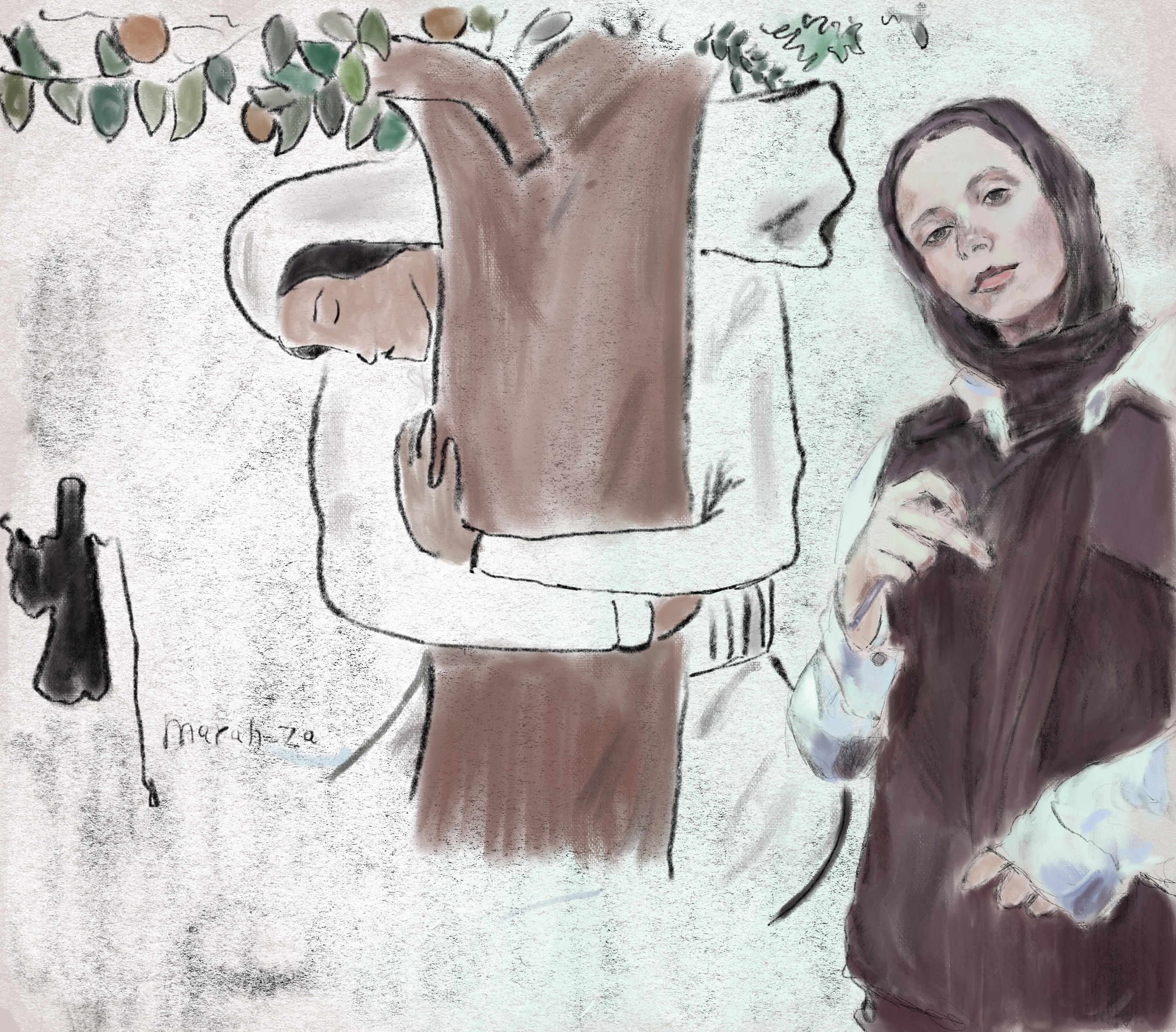 sketch.Marah Khalad is a young, courageous, talented artist trying to survive the genocide in #Gaza . Her expressive drawings and paintings are the only outlet for the loss and trauma she has witnessed and experienced.Pls support @mar80549 instagram: @marahza91