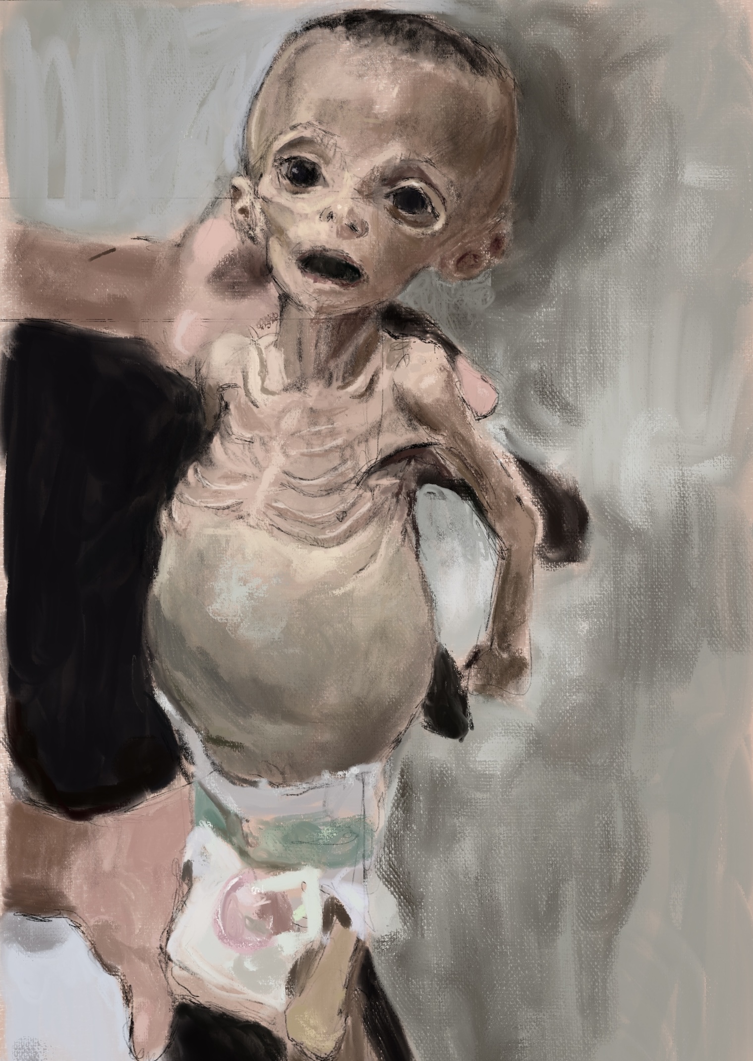 sketch from eyewitness photo.An infant starved to death by #IDF #Netanyahu genocide in #Gaza“To me, when I read the stories of their suffering in Gaza, it blends completely into how I feel about the Holocaust.”Veronika Cohen, #Holocaust survivor via @guardian