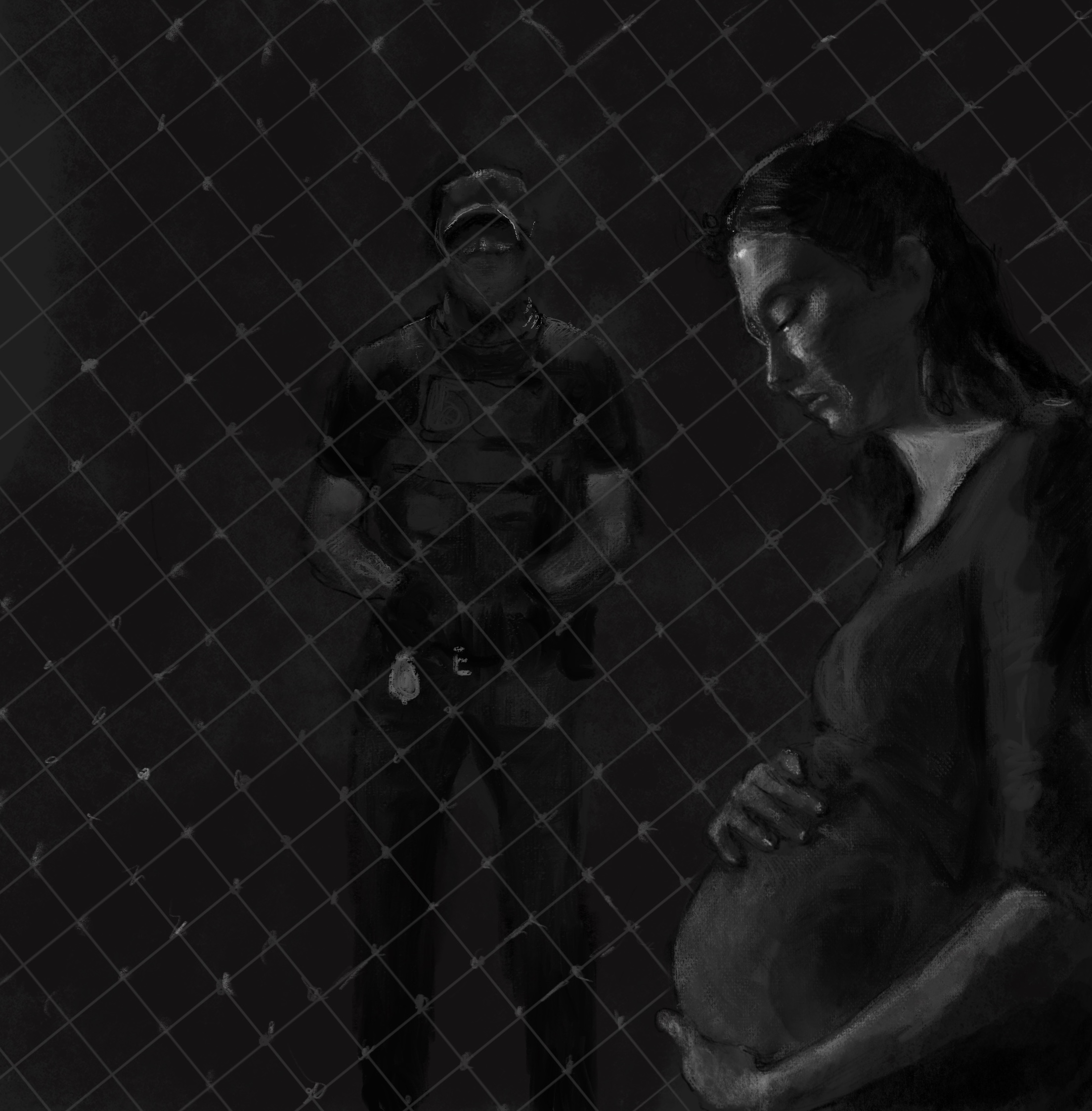 Sketch.Pregnant women detained in #ICE detention/concentration camps are terrified of giving birth in these filthy, inhumane, gulags, surrounded by guards. Please consider donating to a phenomenal organization that provides real, on the ground, monetary support for detained children and their family! If you are horrified, and not sure what you can do, please visit Each Step Home !